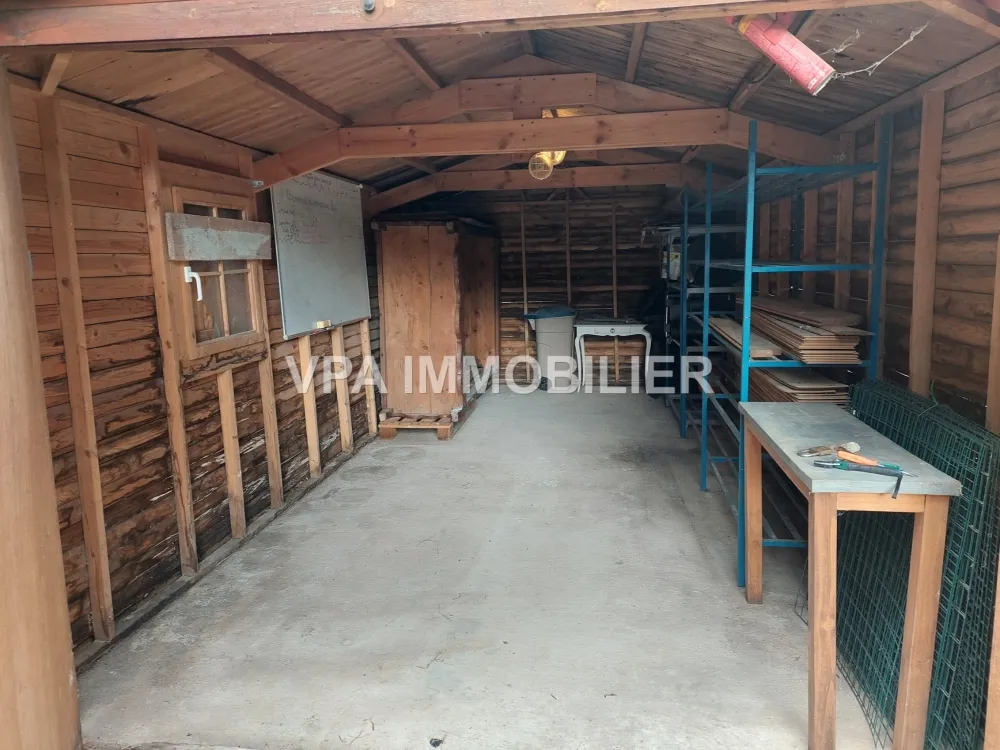 Un grand abri de jardin vient parfaire cette propriété, apportant un espace supplémentaire pour le rangement, le bricolage ou l’aménagement d’un atelier.