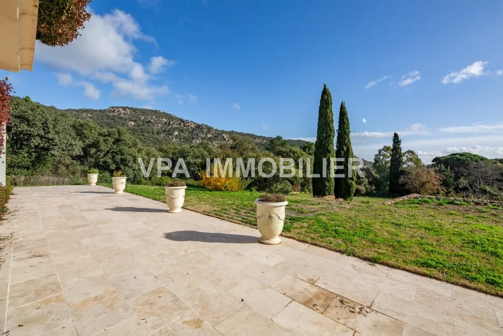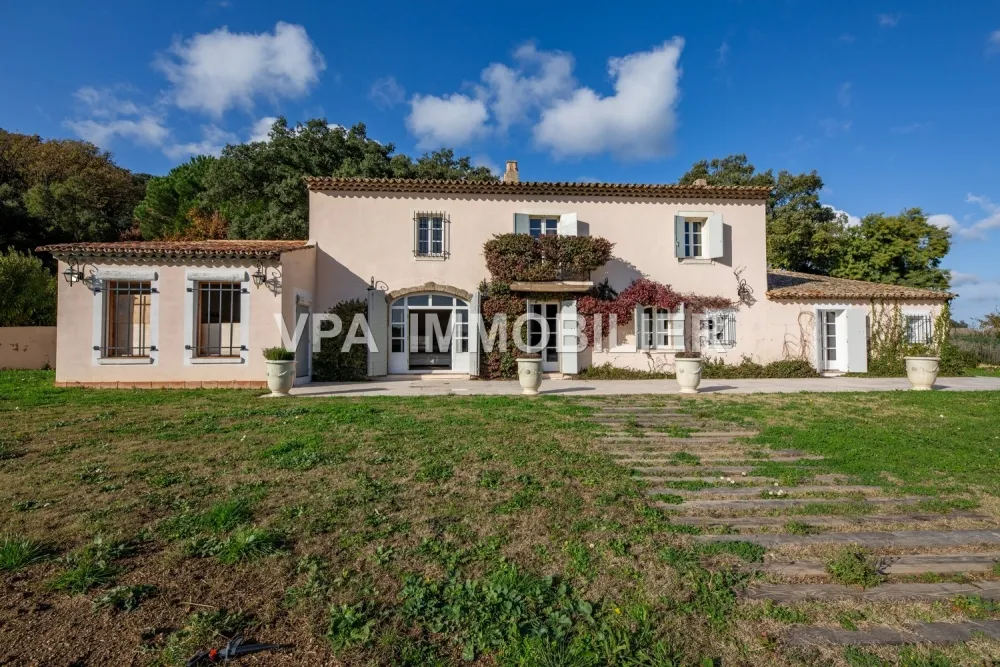 VPA Immobilier, Golfe de Saint-Tropez - Située aux portes des plages de Grimaud, à l’abri des regards, dans un environnement naturel d’une grande quiétude, cette élégante bâtisse d’inspiration provençale s’intègre parfaitement aux paysages vallonnés et verdoyants du massif des Maures. Entourée de vignobles et de végétation méditerranéenne, elle développe 261 m² habitables répartis sur deux niveaux, offrant une atmosphère chaleureuse et lumineuse.